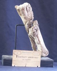 Objet physiqueFracture ancienne non consolidée du métacarpien principal et du métacarpien rudimentaire du cheval avec périostose...