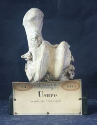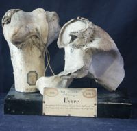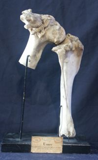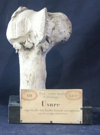 Objet physiqueUsure des surfaces de l'articulation fémoro-tibiale du cheval avec développement d'un bourrelet osseux à la...