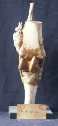 Objet physiqueArticulation fémoro-tibio-rotulienne, végétation autour des surfaces articulaires avec noyaux ossifiés dans les ménisques