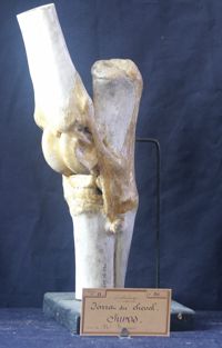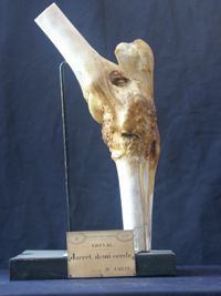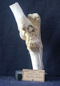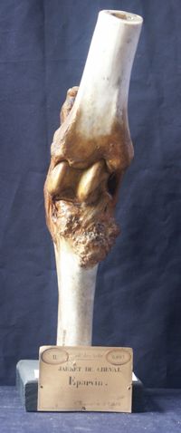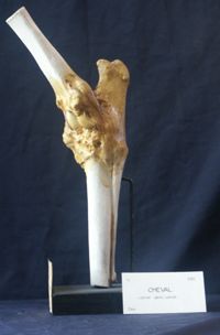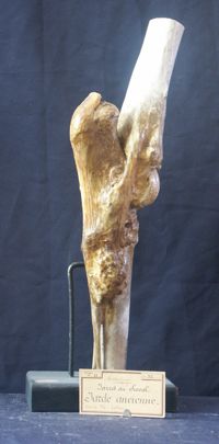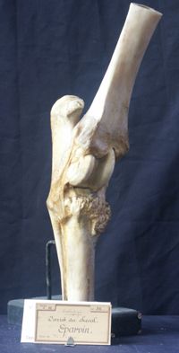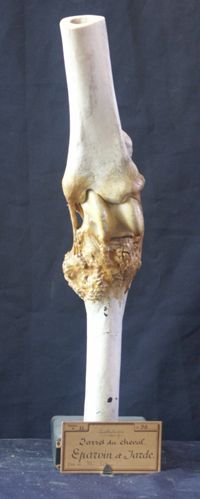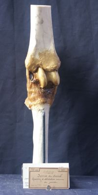 Objet physiqueJarret du cheval, éparvin ancien, exostoses en avant de l'extrémité antérieure du canon