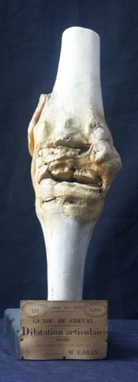 Objet physiqueGenou du cheval, double dilatation articulaire avec périostose des os de la rangée supérieure