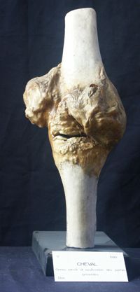 Objet physiqueGenou du cheval, dilatation synoviale à la face antérieure, exostose de l'articulation