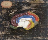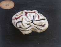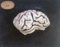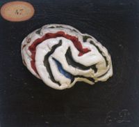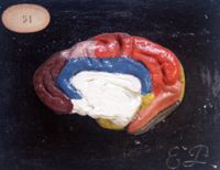 Objet physiqueHémisphères cérébraux du boeuf. 2 pièces.gyri peints à droite, sulci peints à gauche. Remplacé par...