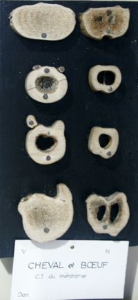 Objet physiqueCoupes transversales du métatarse du cheval et du boeuf