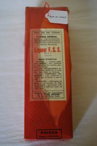 Objet physiqueLiqueur FSS- Tonique général. Anémies, convalescences, infestations parasitaires,affections chromiques de l'appareil respiratoire