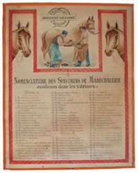 Objet physiqueNomenclature de spécimens de maréchalerie contenus dans les vitrines