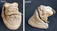 Objet physiqueTare osseuse du cheval en papier mâché. Modèle non terminé en partie peint.
