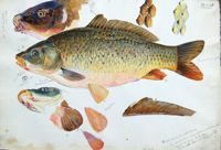 ImageCarpe : profil, tête, gorge, détails de 3 nageoires, détails de 2 plages d'écailles