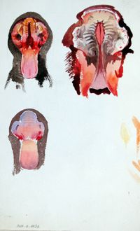 ImageCoupe de tête de cheval ; le septum nasal présente des ulcères (morve ?)