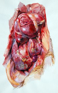ImageAbdomen de volaille atteints de cysticercose (?)