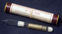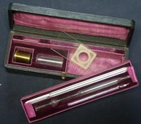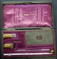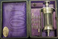 Objet physiqueGrosse seringue en verre et ses deux aiguilles dans un coffret