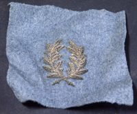 Objet physiqueDécoration représentant deux feuilles de laurier entrelacées, cousues sur de la feutrine bleue