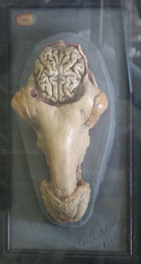 Objet physiqueCerveau du mouton. En place dans la cavité crânienne. Moulage colorié (plâtre).