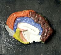 Objet physiqueHémisphère gauche du cerveau du boeuf : vue médiale avec gyri peints