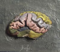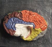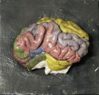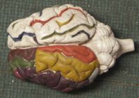 Objet physiqueEncéphale complet : l'hémisphère gauche à ses gyri coloriés et l'hémisphère droit ses sulci de...