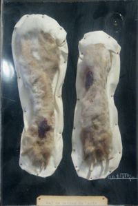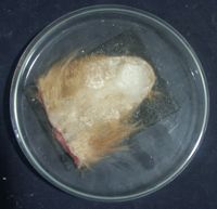 Objet physiquePremiers essais de moulage avec poils de l'animal: Dermite amiantacée de la leishmaniose du chien