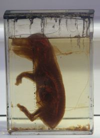 Objet physiqueCoupe médiane de porcelet, diaphanisé, les artères sont injectées en rouge