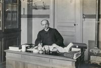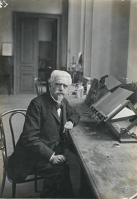 ImageM. Farabeuf, professeur d'anatomie honoraire, dans son cabinet à la faculté de médecine de Paris