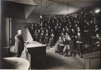 ImageM. Desgrez, faisant son cours de chimie biologique, au laboratoire de l'Ecole pratique, à la...