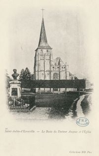 ImageLe buste du docteur Auzoux et l'Église - Saint-Aubin-d'Ecrosville