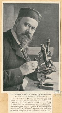 ImageLe docteur Calmette tenant le microscope qui lui sert à étudier "l'Ennemi"