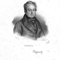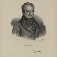 Physiologiste. Membre de l'Académie de médecine, de l'Académie des sciences. Présente en 1816 un ouvrage majeur, traduit en plusieurs langues "Précis élémentaire de physiologie" (cote 38478). En 1822 publie dans le J. Physiol. exp. pathol. pp. 276-279, 366-371 (cote 90051) un article qui montre le rôle sensitif de la racine postérieure des nerfs rachidiens. Magendie explique que la pathologie est la résultante d'une perturbation de la physiologie dans un ouvrage important : "Leçons sur les phénomènes physiques de la vie" est publié entre 1836 et 1838 (cote : 33906). En 1844 il expérimente le premier cathétérisme cardiaque sur les chevaux. Il invente le concept de médecine expérimentale, attachera une importance considérable à la physiologie et à l'observation. Il est le père de la pharmacologie moderne.