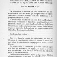 0121 - Page 126 - Dr Rougier : Deux cas de lypémanie avec délire de persécution caractérisé par des hallucinations de l'odorat, du goût et de l'ouie consécutives à des altérations de la muqeuse buccale, nasale et naso-pharyngienne et du squelette des fosses nasale