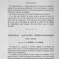 0431 - Page 414 - Drs Prieur et Claoué : Phlegmon laryngien streptococcique. Mort subite