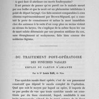0435 - Page 417 - Dr Bar : Du traitement post-opératoire des synéchies nasales. Emploi du carton d'amiante