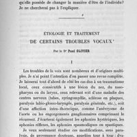 0601 - Page 581 - Dr Olivier : Etiologie et traitement de certains troubles vocaux