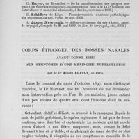 0597 - Page 327 - Dr Ruault : Corps étranger des fosses nasales ayant donné lieu aux symptomes d'une méningite tuberculeuse
