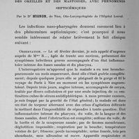 0301 - Page 142 - Dr Mignon : Infection du pharynx des fosses nasales, des sinus de la face des oreilles et des mastoïdes, avec phénomènes septicémiques