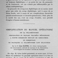 0626 - Page 467 - Dr Glover : Simplification du manuel opératoire de la trachéotomie perforateur en trocart trachéal rétrograde à pointe dissimulée servant de conducteur et permettant de pratiquer la trachéotomie sans dilatateur