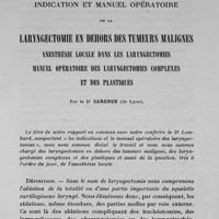 0002 - Page sans numérotation - Dr Lombard : Indications et technique de la laryngectomie pour cancer