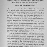 0594 - Page 323 - Dr Broeckaert : Intervention par la voie supra-auriculaire en cas de paralysie otique du moteur oculaire externe