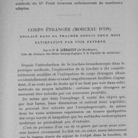 0828 - Page 557 - Dr Liébault : Corps étranger (morceau d'os) enclavé dans la trachée depuis deux mois