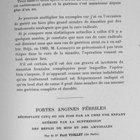 0611 - Page 393 - Dr Viollet : Fortes angines fébriles récidivant cinq ou six fois par an chez une enfant guéries par la suppression des replis de Hiss et des amygdales