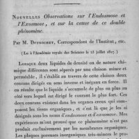 - Nouvelles observations sur l'endosmose et l'exosmose