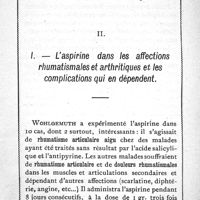 0015 - Page 13 - Chapitre II/ Applications de l'aspirine. I- L'aspirine dans les affections rhumatismales et arthritiques et les complications qui en dépendent