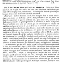0352 - Page 348 - Folie du doute avec délire du toucher [Ant. Ritti] (bibliographie) / Folie épidémique. Voy. Épidémiques (Folies) / Folie épileptique. Voy. Épilepsie / Folie érotique. Voy. Monomanie, Nymphomanie et Satyriasis / Folie héréditaire. Voy. Héréditaire (Folie) / Folie hypochondriaque. Voy. Hypochondrie / Folie hystérique. Voy. Hystérie / Folie impulsive, Folie instinctive. Voy. Héréditaire (Folie), Manie et Monomanie