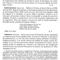 0403 - Page 399 - Fontanelles [Amédée Dechambre] / Fontaneyre (Eau minérale de) [A. Rotureau] (bibliographie) / Fontanon (Denis) [A. Chéreau] / Fontanus. Voy. Fonteyn / Fontarabie (Station maritime) [A. Rotureau] / Fonte (Chimie) [Ed. Willm]