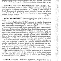 0213 - Page 209 - Triéthylmélamine [L. Hahn] / Triéthylméthane. Voy. Heptanes / Triéthylphosphine. Voy. Éthylphosphine / Triéthylrosaniline [L. Hahn] / Triéthylsilicol [L. Hahn] / Triéthylstibine ou Stibéthyle [L. Hahn] / Triéthylurée. Voy. Éthylurée / Trifolium. Voy. Trèfle / Trigénique (Acide) [L. Hahn]