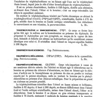 0257 - Page 253 - Trioxyprotéine ou Trioxyde de protéine. Voy. Protéine / Tripalmitine. Voy. Trimargarine / Triphasia [Ed. Lefèvre] (bibliographie) / Triphénolméthane [L. Hahn] / Triphénylacétique [L. Hahn] / Triphénylamine [L. Hahn]