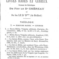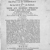 - Catalogue de livres rares et curieux provenant des bibliothèques de feu le Dr Chéreau et de feu le Dr *** (de Bailleul), vente aux enchères publiques le mardi 6 juillet 1886