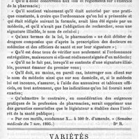 0075 - Page 75 - Revue des intérêts professionnels. Par le Dr Reuss. Le pharmacien est-il obligé d'exécuter une ordonnance de médecin dont la signature est illisible ? / Variétés. La sérothérapie du tétanos. Essais de traitement préventif. Par M. Ed. Nocard