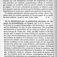 0087 - Page 88 - Revue des journaux. Un mode de traitement de l'impaludisme chronique. De la désinfection par la production sur place de vapeurs de formaldéhyde ou formol