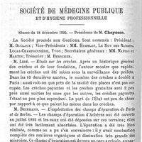 0169 - Page 170 - Société de médecine légale de France. Séance du 9 décembre 1895. Présidence de M. le professeur Gab. Pouchet. Inculpé auto-accusateur. Par M. Gibert Ballet / Société de médecine publique et d'hygiène professionnelle. Séance du 18 décembre 1895. Présidence de M. Cheysson. Etude sur les crèches. L'exploitation des champs d'épuration de Paris et de Berlin