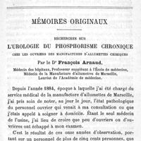 0192 - Page 193 - Mémoires originaux. Recherches sur l'urologie du phosphorisme chronique chez les ouvriers des manufactures d'allumettes chimiques. Par le Dr François Arnaud