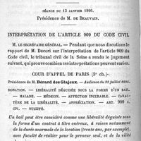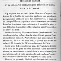0271 - Page 272 - Société de médecine légale de France. Séance du 13 janvier 1896. Présidence de M. De Beauvais. Interprétation de l'article 909 du code civil. Cour d'appel de Paris (5e ch.). Le secret médical et la déclaration obligatoire des embryons et foetus. Par le Dr Lutaud
