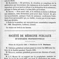 0276 - Page 277 - Société de médecine légale de France. Séance du 13 janvier 1896. Présidence de M. De Beauvais. Le secret médical et la déclaration obligatoire des embryons et foetus. Par le Dr Lutaud / Société de médecine publique et d'hygiène professionnelle. Séance du 22 janvier 1866. Présidence de M. Duclaux